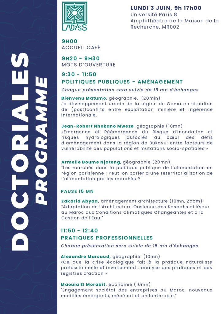 Pour plus d’information, vous pouvez écrire à Doctorantsladyss@gmail.com