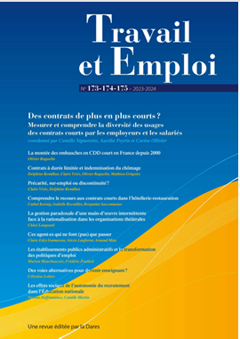 Ollivier Carine, Peyrin Aurélie et Signoretto Camille, Des contrats de plus en plus courts ? Mesurer et comprendre la diversité des usages des contrats courts par les employeurs et les salariés, [s.l.] : DARES, décembre 2024 (vol. 173-173‑175). URL : https://hal.science/hal-04845877. Numéro en ligne en intégralité.